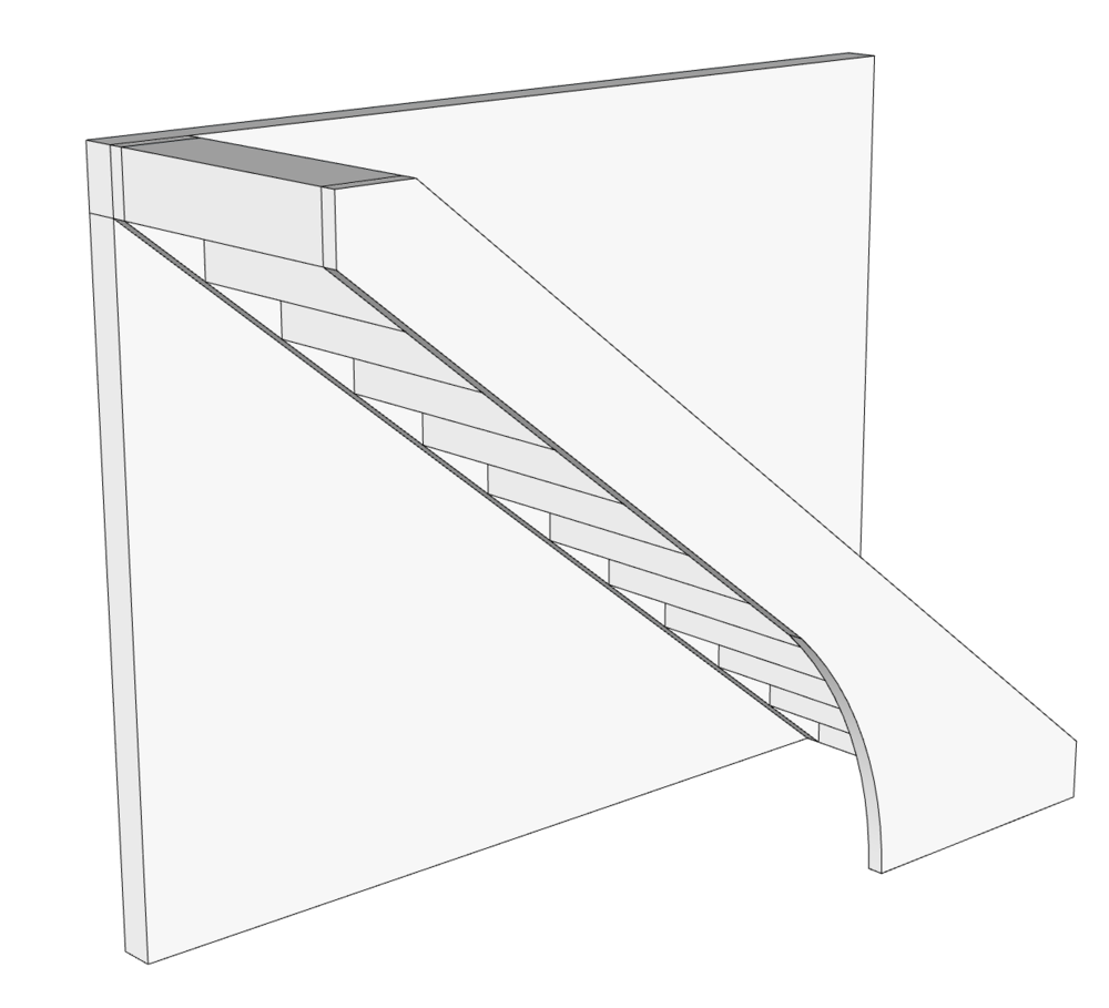 Så här ser min trappa ut. Nåja, inte riktigt, den är faktiskt sväng åt höger precis på slutet men det orkade jag inte försöka återskapa här. Trappan går ned i gillestugan i källaren och jag har länge tänkt att det smidigaste vore att förvara all "elektronik" under trappen. Det vill säga förstärkare, spelkonsoller, spelkontroller osv osv. Jag har kollat på olika hyllor och sådant men inte varit nöjd med hur det skulle se ut.