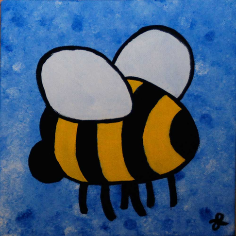 En liten blomma som hör ihop med biet. Akryl på 20x20cm bomullsduk.