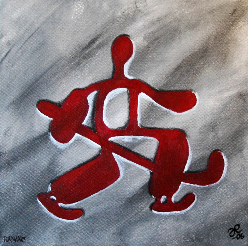 En tavla som Angela beställde till sin kusin. En hockeymålvakt i en hällristning ska det föreställa. Jag tyckte faktiskt om den.