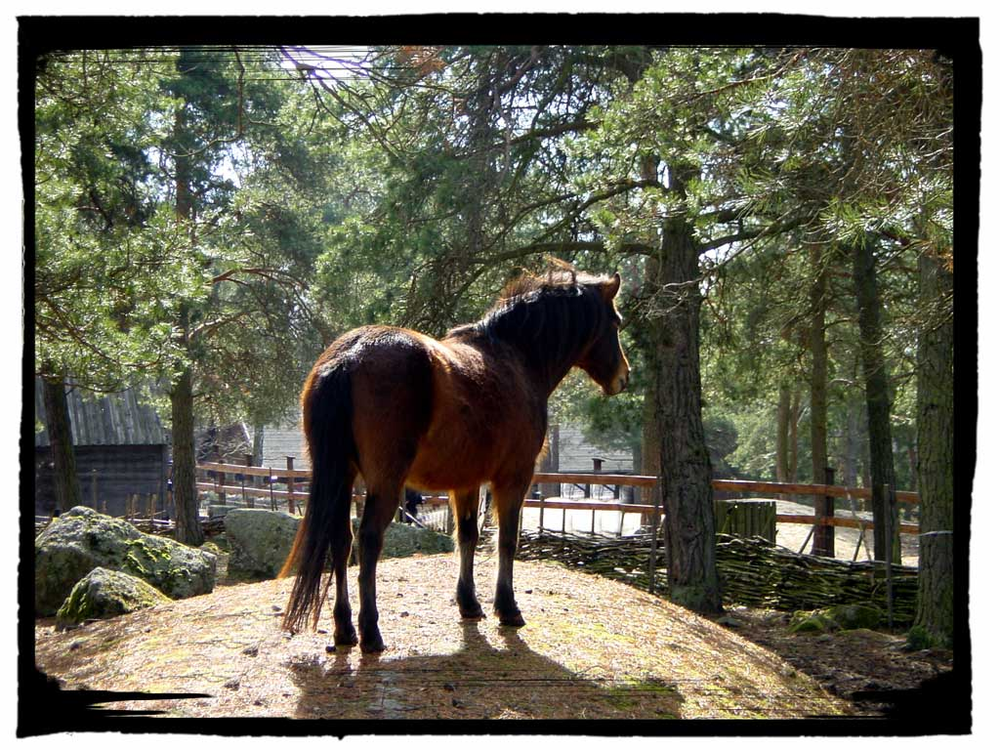 Häst på kulle i motljus