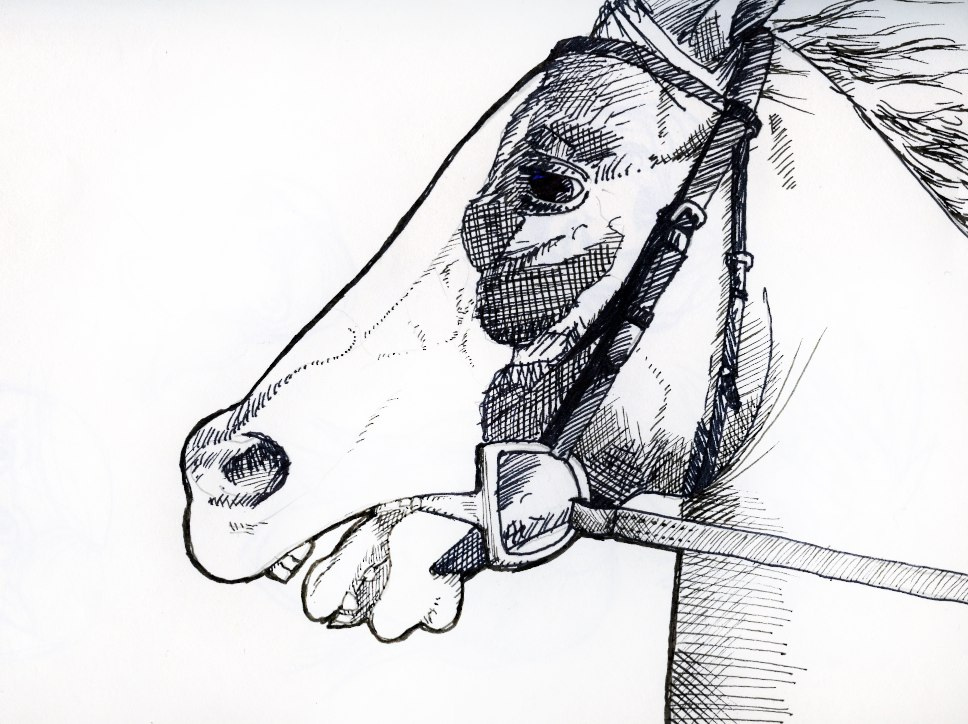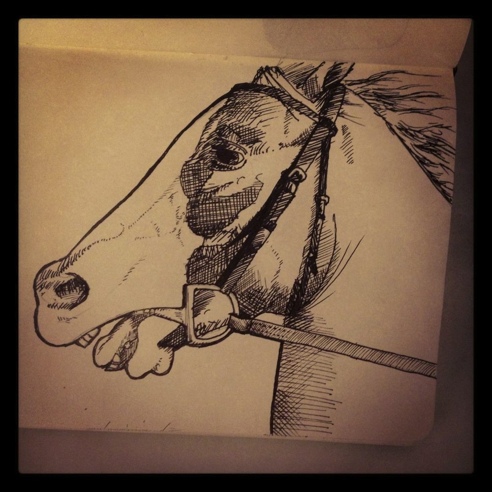 En liten teckning på en häst som kanske inte gillar tränset så mycket?