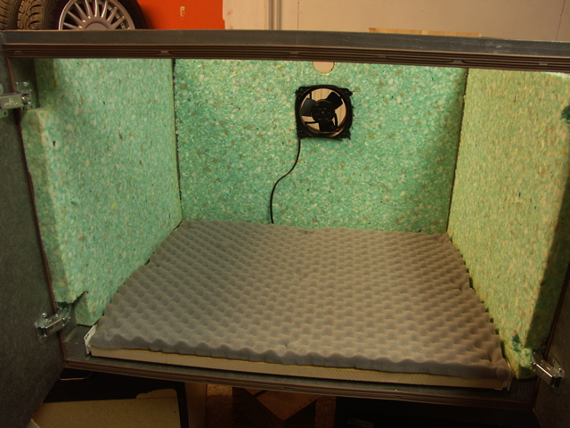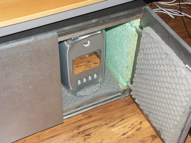 Hushboxen är byggd i MDF och isoleringsmaterial från Jam och Bauhaus.