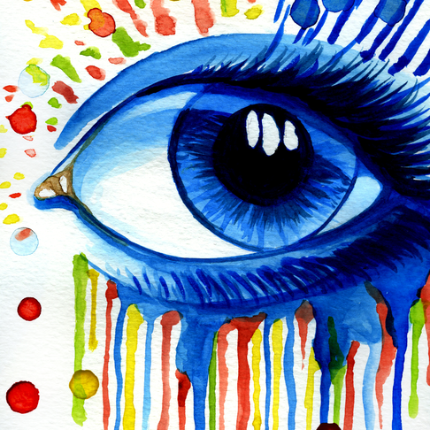 Jag har alltid gillat ögon, och så här i efterhand tror jag att det här ögat representerar syner för både glädje och sorg. Ens ögon ser mycket saker genom ens liv och kanske kan det vara en enkel bild med färgexplosioner och rinnande mascara? Jag vet inte, men i slutändan så tycker jag ändå den blev helt ok.