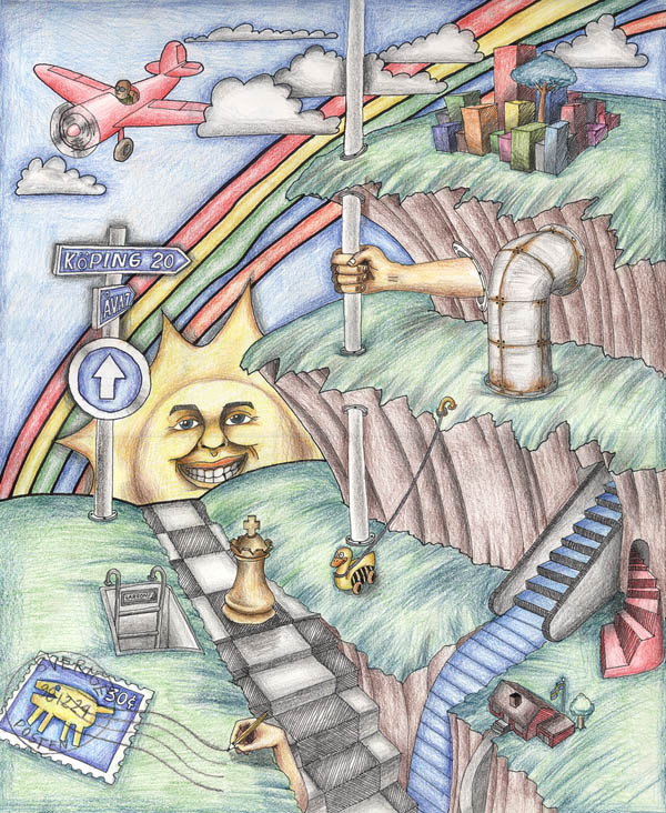 En tavla jag ritade till min moster i julklapp 1999, hon tyckte om den tror jag.