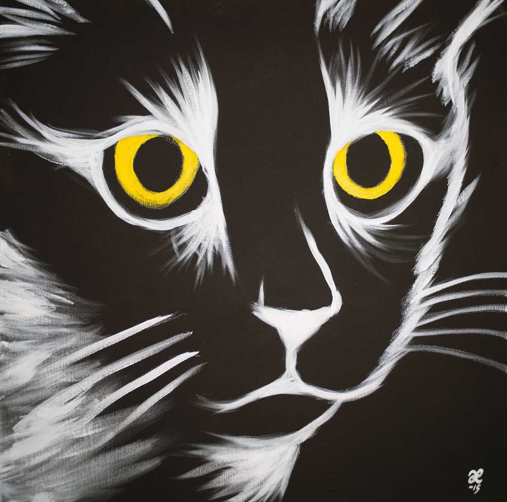 Beställningsjobb från min hemsida. En katt målad i samma stil som min Sigge-tavla men utgick från beställarens katt.
