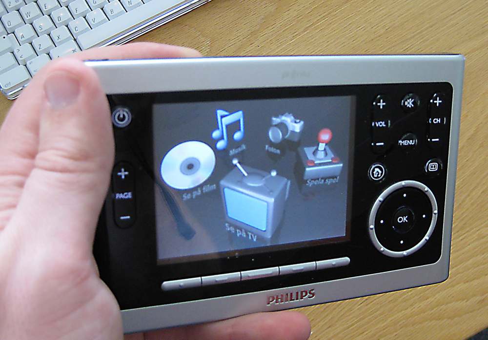 Jag slog på stort och införskaffade mig en för att styra allt. Jag testade en hel del andra lösningar först, inklusive Logitech Harmony 1000, men Pronton är lätt den bästa. Den är verkligen helt otrolig. Philips flaggskepp av fjärrkontroller. Den har en upplösning på 640x480 och man har full frihet att redigera gränssnittet hur man vill. Den är verkligen helt fantastisk. Tyvärr så är det ett Windowsprogram man använder för att redigera den, men det fungerar nu när jag kan ha Windows installerat på min , så jag har med mig konfigurationen till jobbet och hemma.