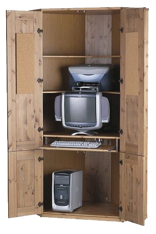 Jag har också kollat på en möbel på IKEA som jag skulle vilja ersätta bokhyllan i kontoret med. Det är än sådan där "hörnarbetsplats", men jag skulle inte använda den som det. Den skulle stå i hörnet och mina datorer skulle stå i botten, och sen skulle det gå ut sladdar till skärm och tangentbord som står på bordet. Eftersom det är ett hörnskåp så finns det gott om plats i det för pärmar och allt sådant. Jag tror det kan bli en ruskigt bra lösning.