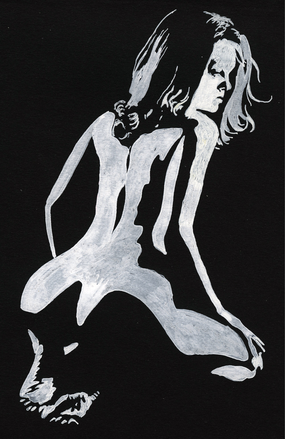 Svartvit flicka som inte är det minsta påklädd. Ritad med