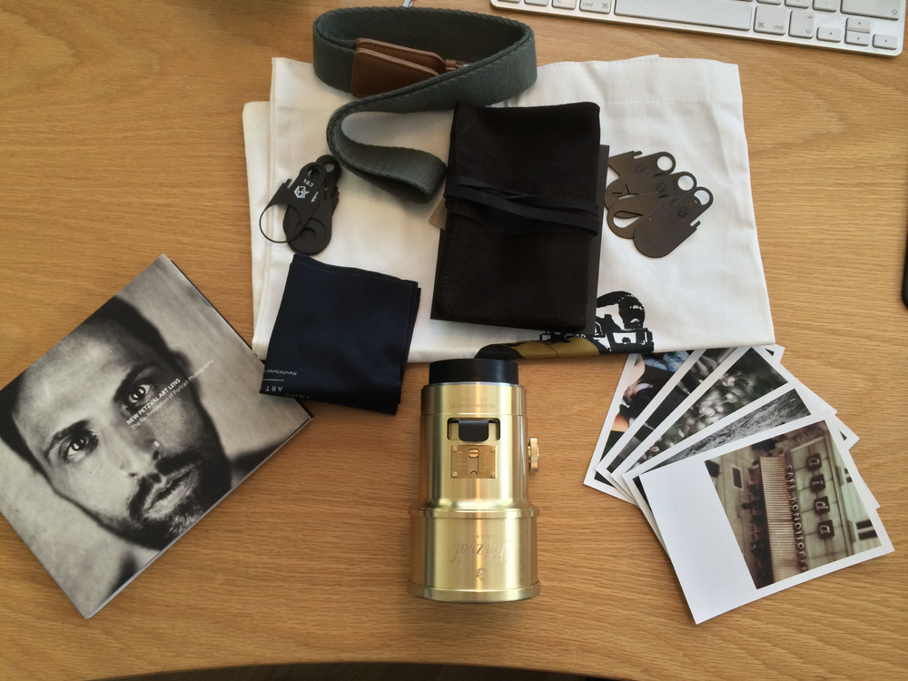 Och här är grejerna som följde med om man var med i kickstarter-kampanjen. En hel del smått och gått. Kameraremmen använder jag på min Sony RX1:a.