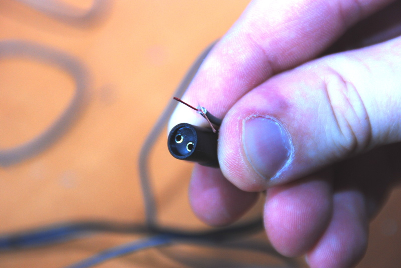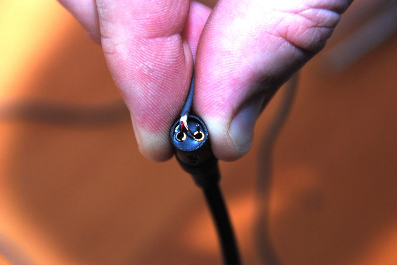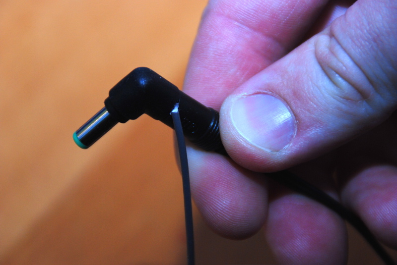 Eftersom AC-adaptern har utbytbara kontakter så har den en kabelsko som ser ut så här. Sen sätter man på den kontakten som är relevant för det man vill göra.