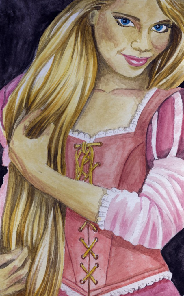 Mitt bidrag till torsdagstemat den här veckan, vilket är "hår" och har bestämts av ArtEmilia. Rapunzel har ju en del hår och här håller hon på och leker med det helt enkelt. Jag baserade den på en bild jag hittade på nätet.