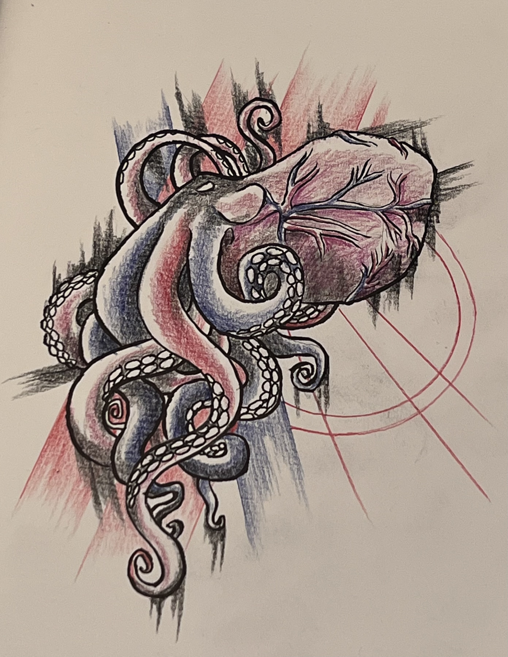 Emma ville ha en tatuering som är en bläckfisk där kroppen är ett hjärta, som omslaget till skivan Eat the Elephant av Perfect Circle. Då just den bläckfisken är lite spretig så valde jag en som är lite mer "samlad". Hon gillade skissen!