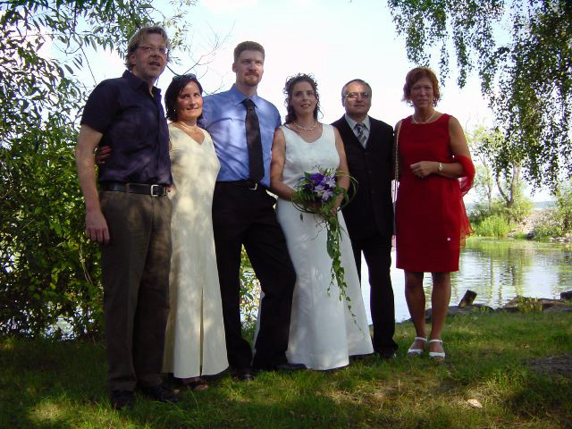 Tinas och mina föräldrar poserar tillsammans med oss. Gissa vilka som är vilka?