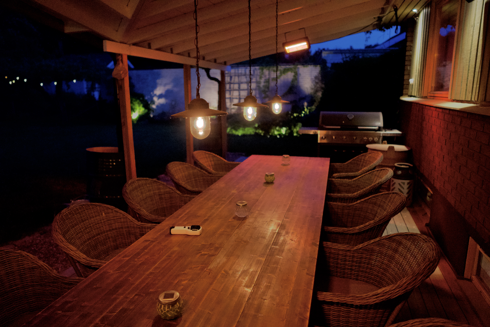 Efter jag byggde tak över uteplatsen och sedan ett stort bord så har det saknats lite grejer. Bland annat infravärmare då även sommarkvällar kan bli lite kyliga. Men också belysning över bordet.