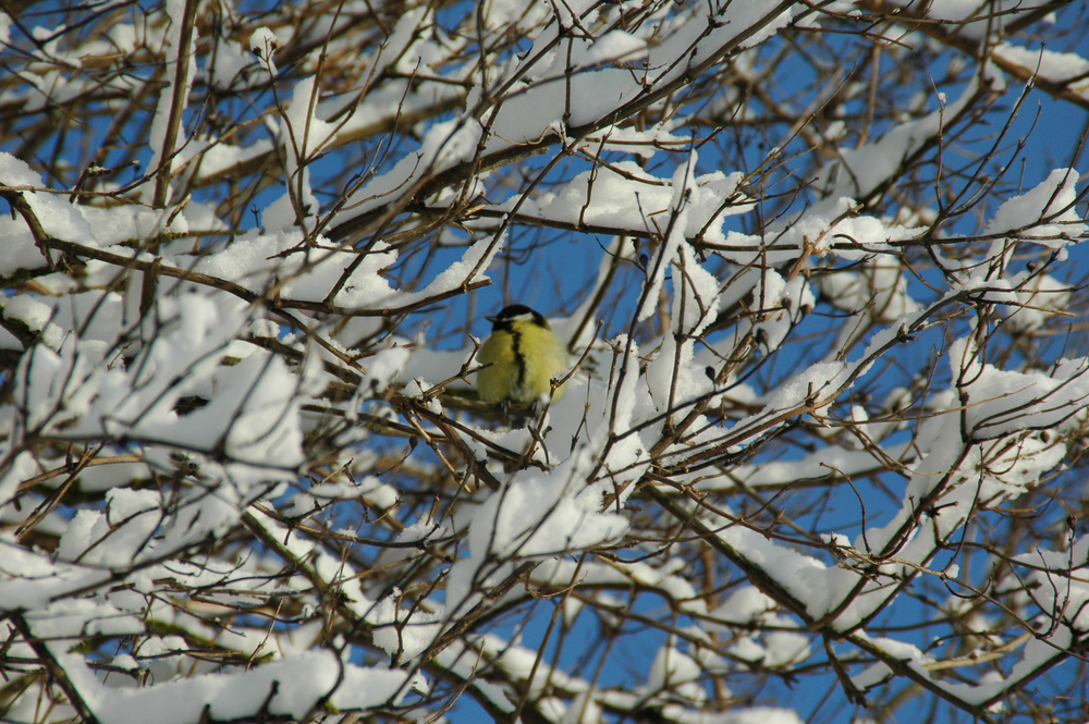 Ensam i ett virrvarr av kvistar. Tina som har fotat