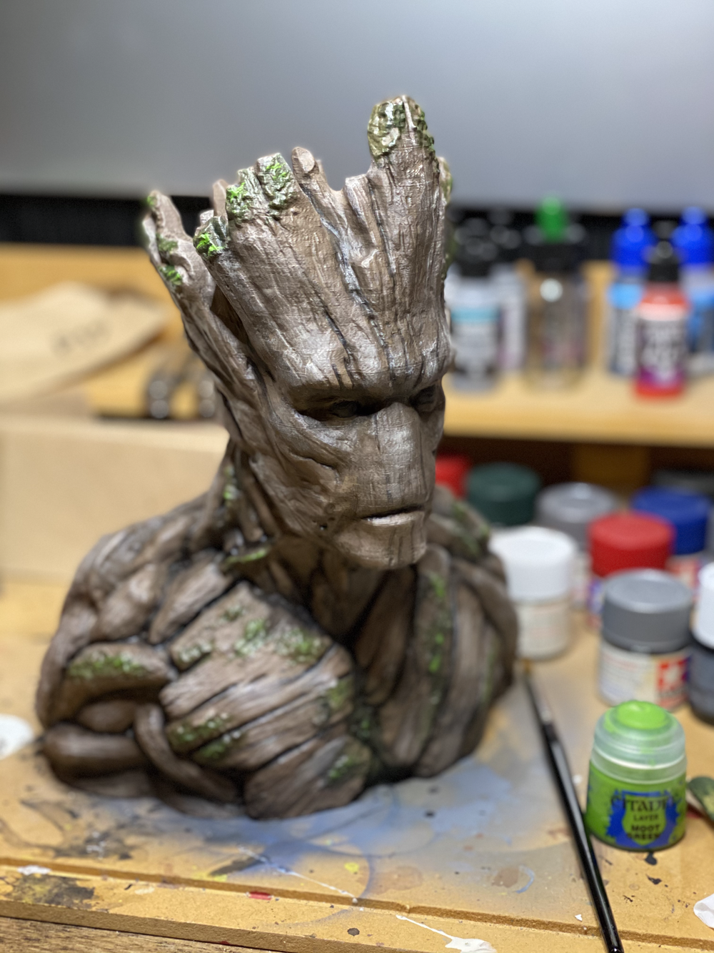 Som svar på mitt inlägg så fick jag ett meddelande från en av min sons gamla karatekompisar som erbjöd sig att skriva ut modeller på sin 3D-skrivare, vad skoj! Snabbt hittade jag en modell av Groot som jag skickade till honom. Ett och ett halvt dygn senare så fick han 400 kronor för att ha skrivit ut den åt mig.