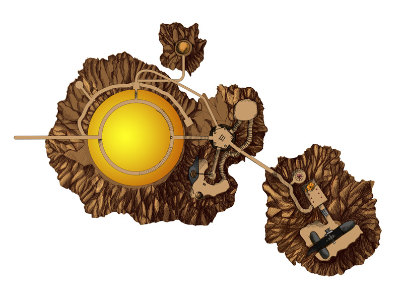 The entire outline of the island is there now, but the terrain shading isn't done yet. The paths are laid out but not finished. I'm fairly pleased with the color palette so far. Looks earthy and "old" if you like.