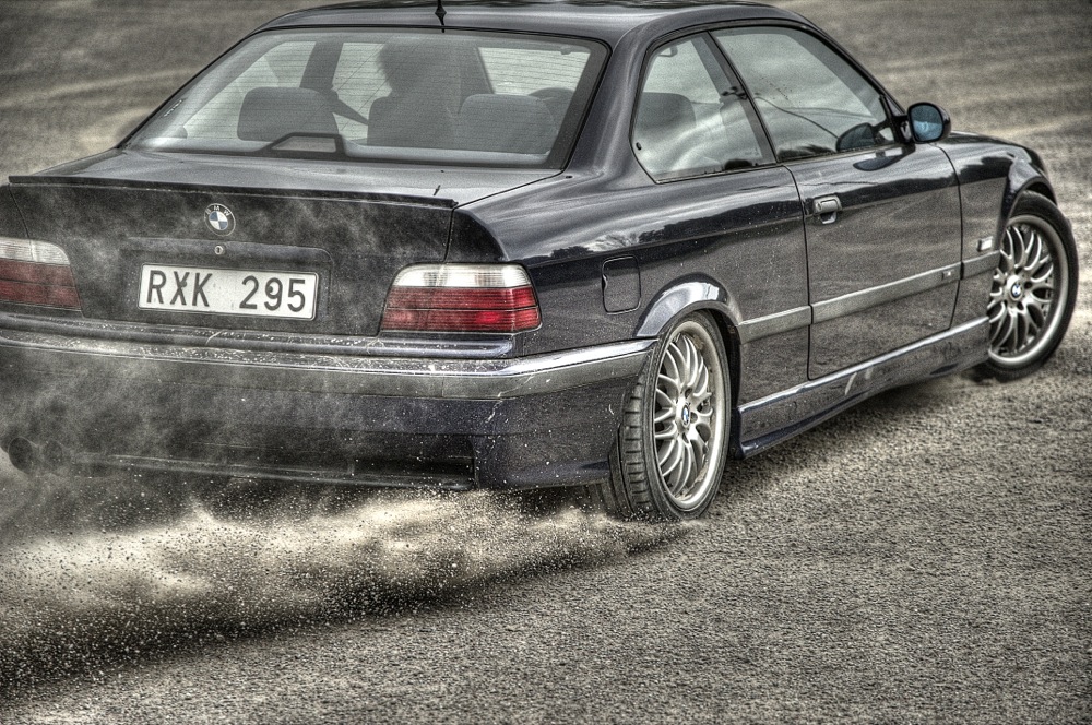 Efteråt så åkte jag och en kompis ut till en grusplan och sladdade lite med hans BMW, blev ett par bilder på det med. Skoj som tusan!