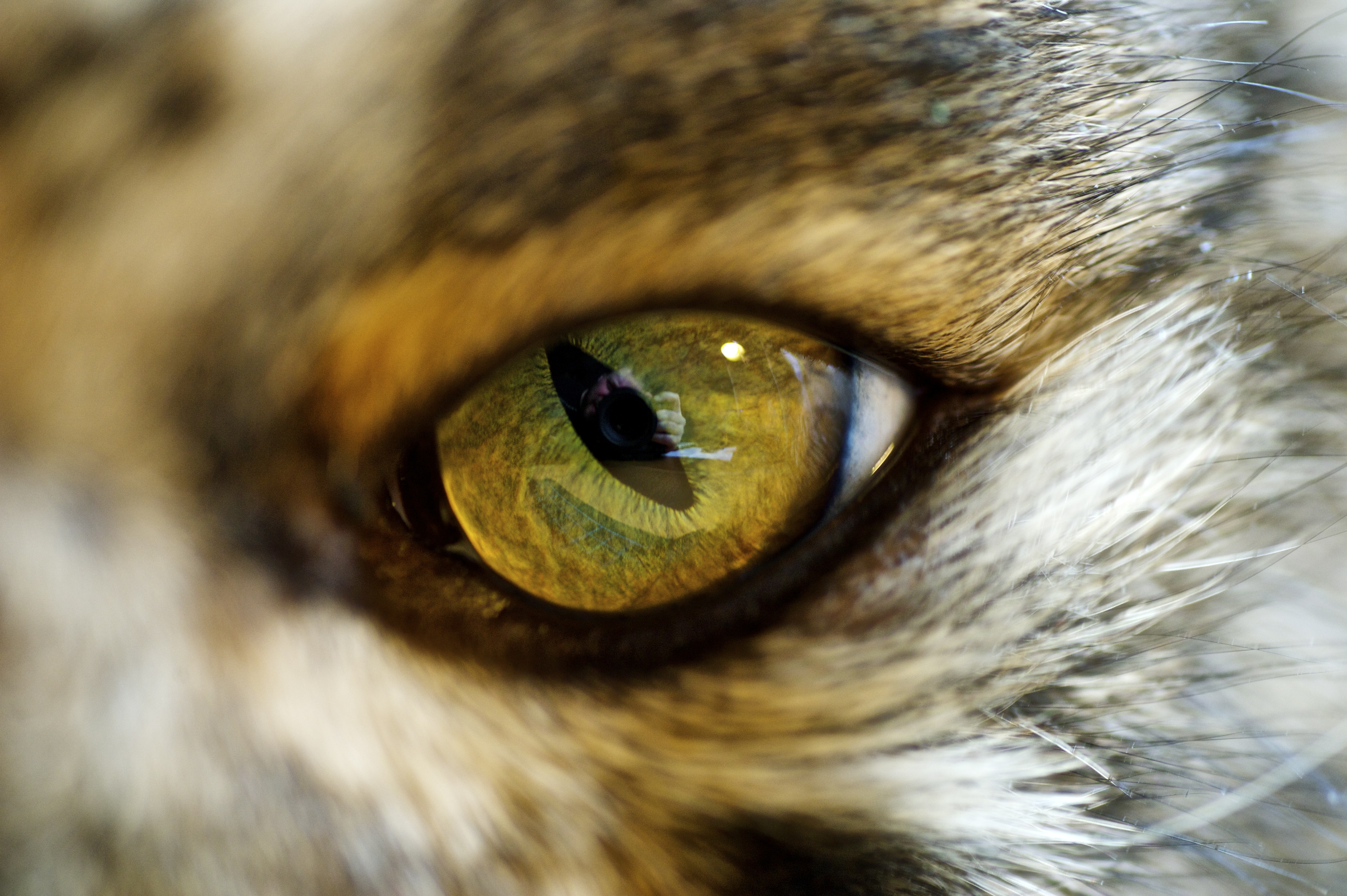 Makrofoto på Sigges öga, och det fräna är att man ser mig med kameran inuti. Blev lite coolt tycker jag.
