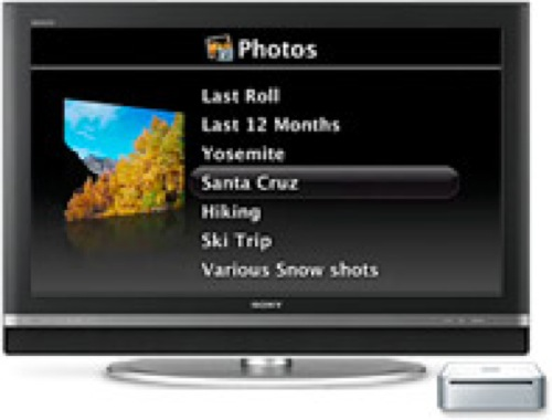 Alla nya Maccar kommer med Apples egna fjärrkontroll som funkar med Front Row. Det är en smidig liten fjärrkontroll med endast sex knappar och som ligger förvånansvärt bra i handen. Front Row är ju uppbyggd kring den här fjärrkontrollen så sex knappar räcker gott och väl för det - även om man kanske saknar en del funktioner i till exempel Front Rows DVD-uppspelning. Tyvärr så kan man inte programmera Apples fjärrkontroll att göra något annat än starta och manipulera Front Row om man inte köper tredjepartsprogrammet Sofa Control (c:a 75 kronor). Med Sofa Control kan man styra de flesta program som man vill, och det kommer med inställningar (AppleScript) för de mest logiska. Vad som saknas är givetvis kontroll över muspekaren.