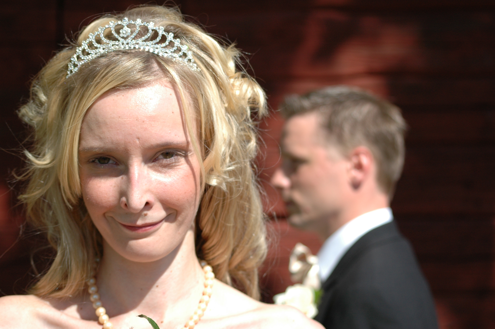 Jag gillar kort skärpedjup, där något i bakgrunden ger betydelse till något i förgrunden. Petronella ler åt kameran medan hennes man väntar i bakgrunden. Mysigt på något vis