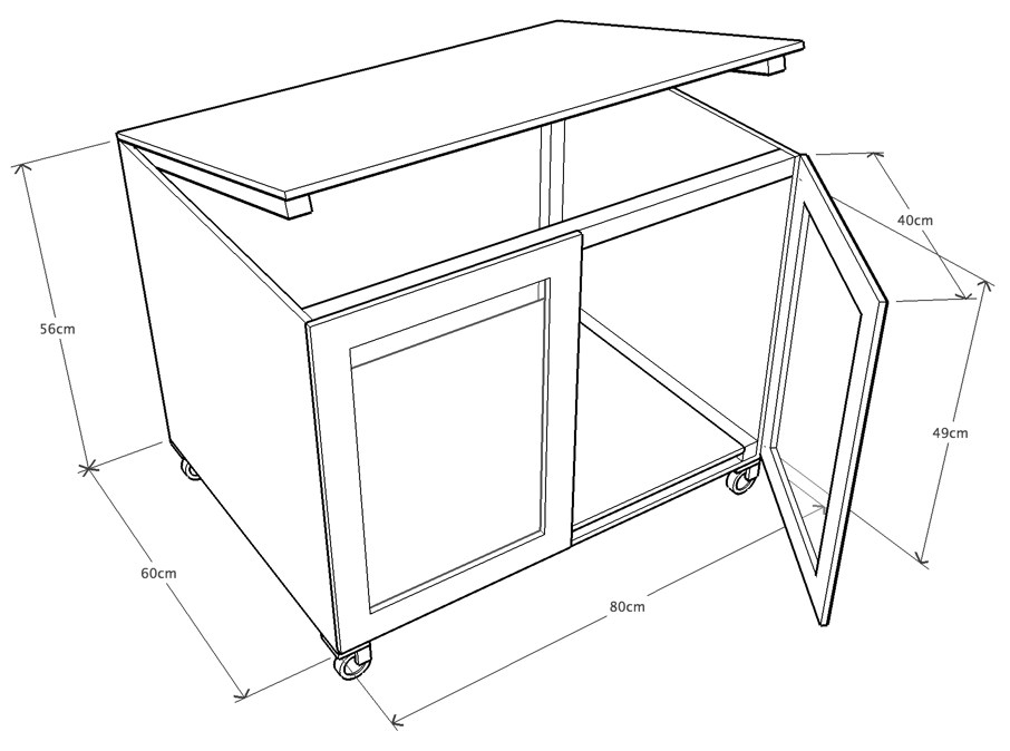 Ritningen är gjord i SketchUp, och förutom att i ritningen så hade jag glasdörrar så är den färdiga lådan identisk med ritningen.