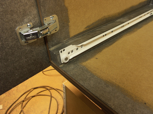 Här är skenan som bottenplattan går i. Ska hålla för sjuttio kilo, också köpt på Bauhaus. 50 cm djup och cirka 40 cm skjutlängd.