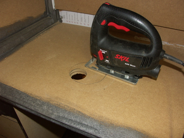 Dags att såga upp ett hål för fläkten så vi kan mata ut luften ur datorn