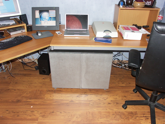 Så här ser det ut när den står i kontoret! Allting döljs och det låter verkligen minimalt. Fläkthålet är ju rätt så stort, så lite ljud rymmer ut den vägen, men det är en riktigt stor skillnad.