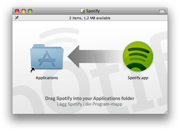 Bilden i bakgrunden är alltså precis som innan något som utvecklaren lagt till och det är en mapp precis som innan. Detta är alltså ingen installerare! Om du klickar på knappen så kopieras filen från volymen till /Applications, det är allt.