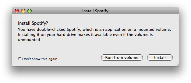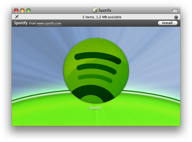 Så här borde det se ut istället. Den mörka raden visas automatiskt med namnet på applikationen som finns i DMG-filen, hemsidesadressen där den laddades ned från (den här informationen håller OSX reda på automatiskt på nedladdade filer) och en knapp för att installera.