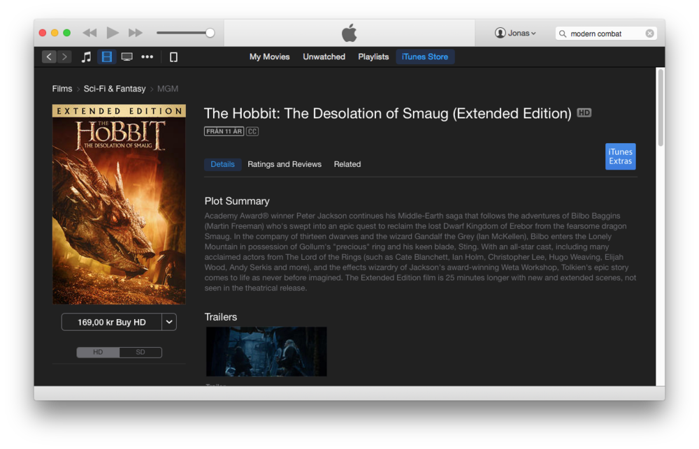 Men i slutändan så är jag en "köpare", jag gillar att ha filmer i filmhyllan, men om jag nu köper filmen via iTunes Store så står den ju inte i filmhyllan! Den ligger på hårddisken och tar plats i stället. Visst har jag en 12TB NAS-disk att lägga filmerna på förstås, men det är ju ändå inte samma känsla av att "ha" filmen. Och då har ju ändå iTunes Store fixat det där med etxramaterial och Desolation of Smaug kommer med hela nio timmar extramaterial, 1080p-version av filmen och allt för 169 kronor, jämfört med 299 kronor i handeln. Svårt att se problemet nu.