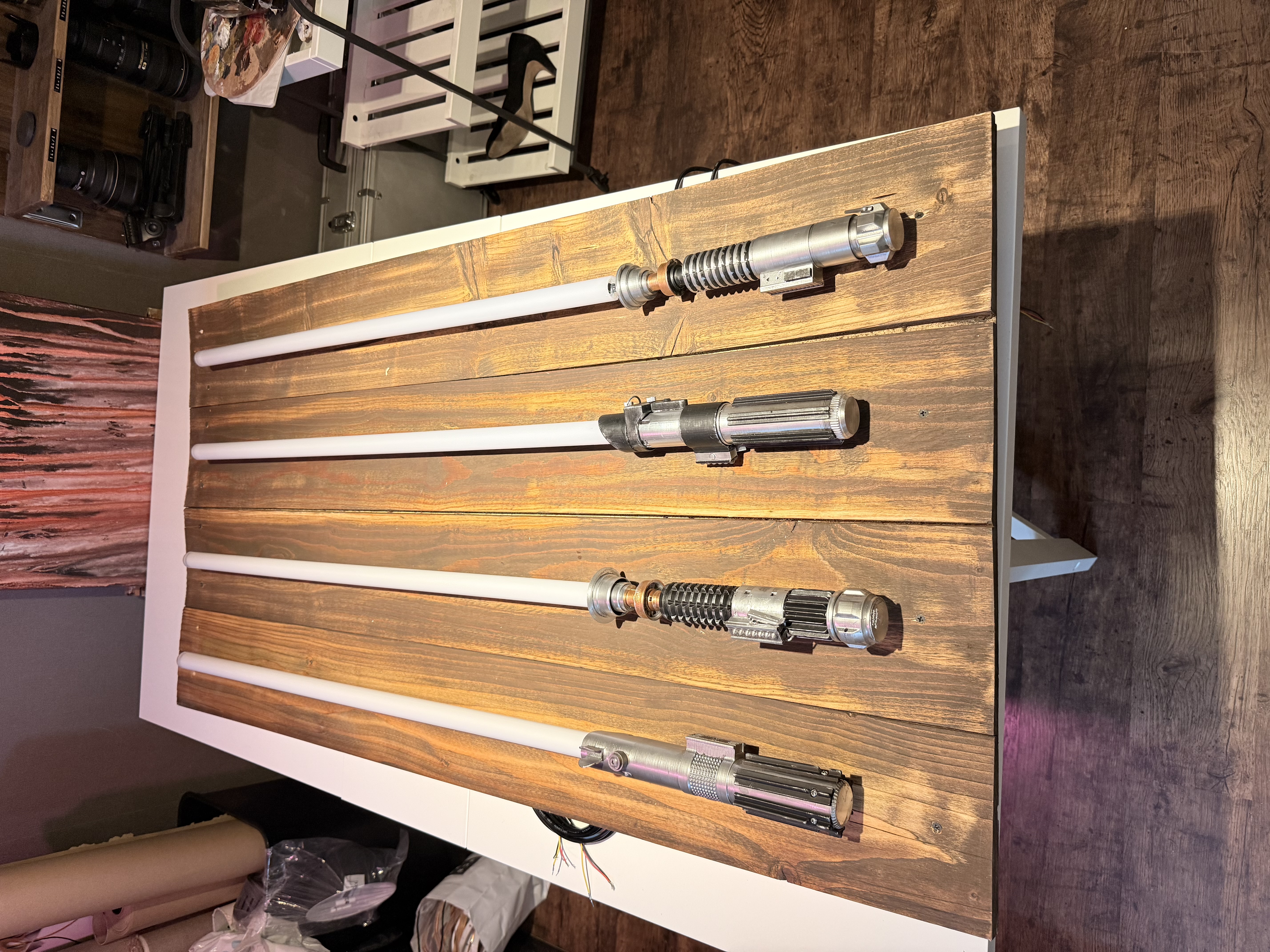 Detta handlar om mitt ljussabel-projekt som jag skrev om senast här. Det är inte klart än, men det har kommit lite längre bit på vägen. Under tiden så har jag lyckats sabba ett par LED-strips för dom är tydligen väldigt känsliga för att bli felkopplade, vilket var lätt att göra för det fanns ingen instruktion om vilka sladdar som ledde till vad på LED-strippen. Oops.