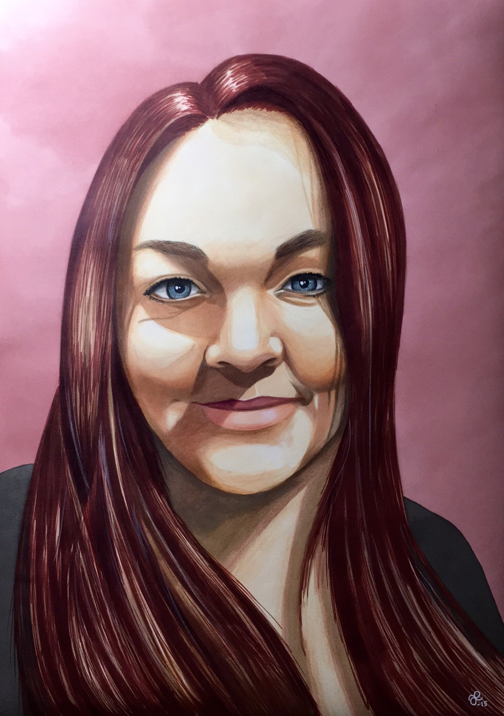 Porträtt av Marika, en gammal bekant. Promarkers på Letraset-papper i A3-format. Bromarkers är riktigt klurigt att jobba med, att flå till snygga övertoningar och sånt, men jag tror jag börjar få lite mer häng på det. Vad tycker du?