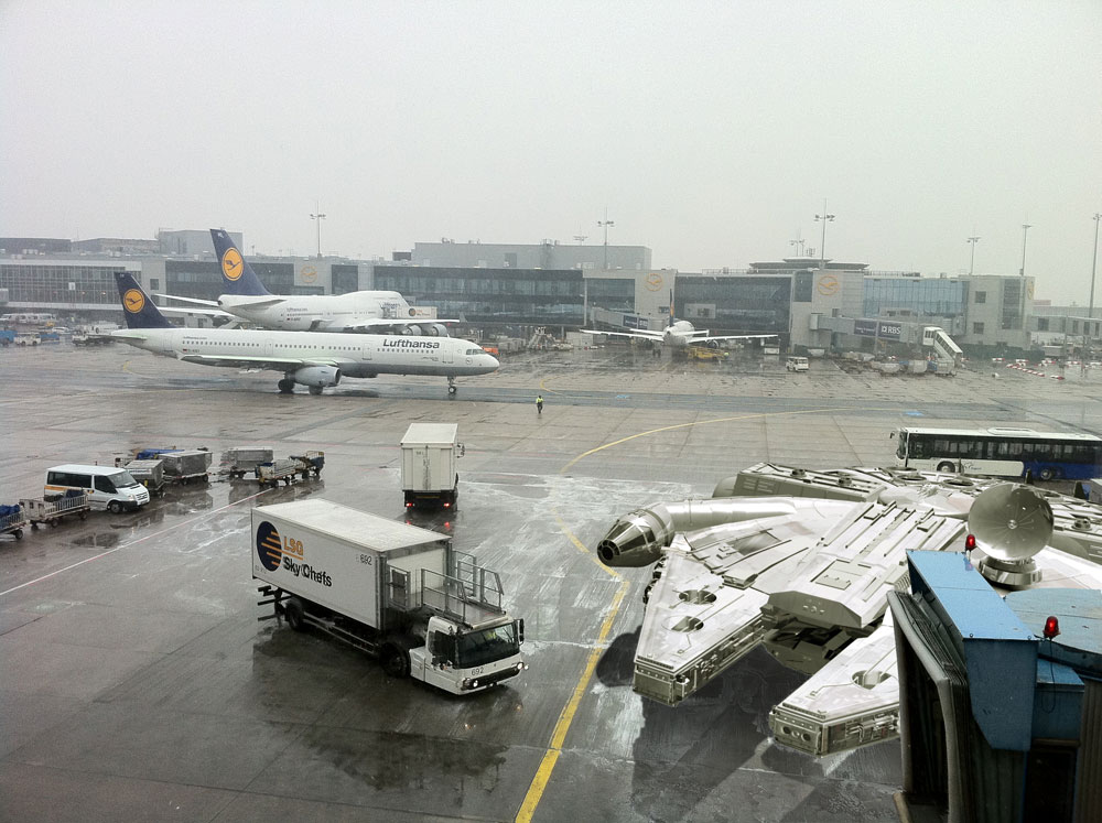Såg detta först i efterhand, när vi var på Frankfurts flygplats så stod visst Falcon där och tankades, måste ha missat det helt då.