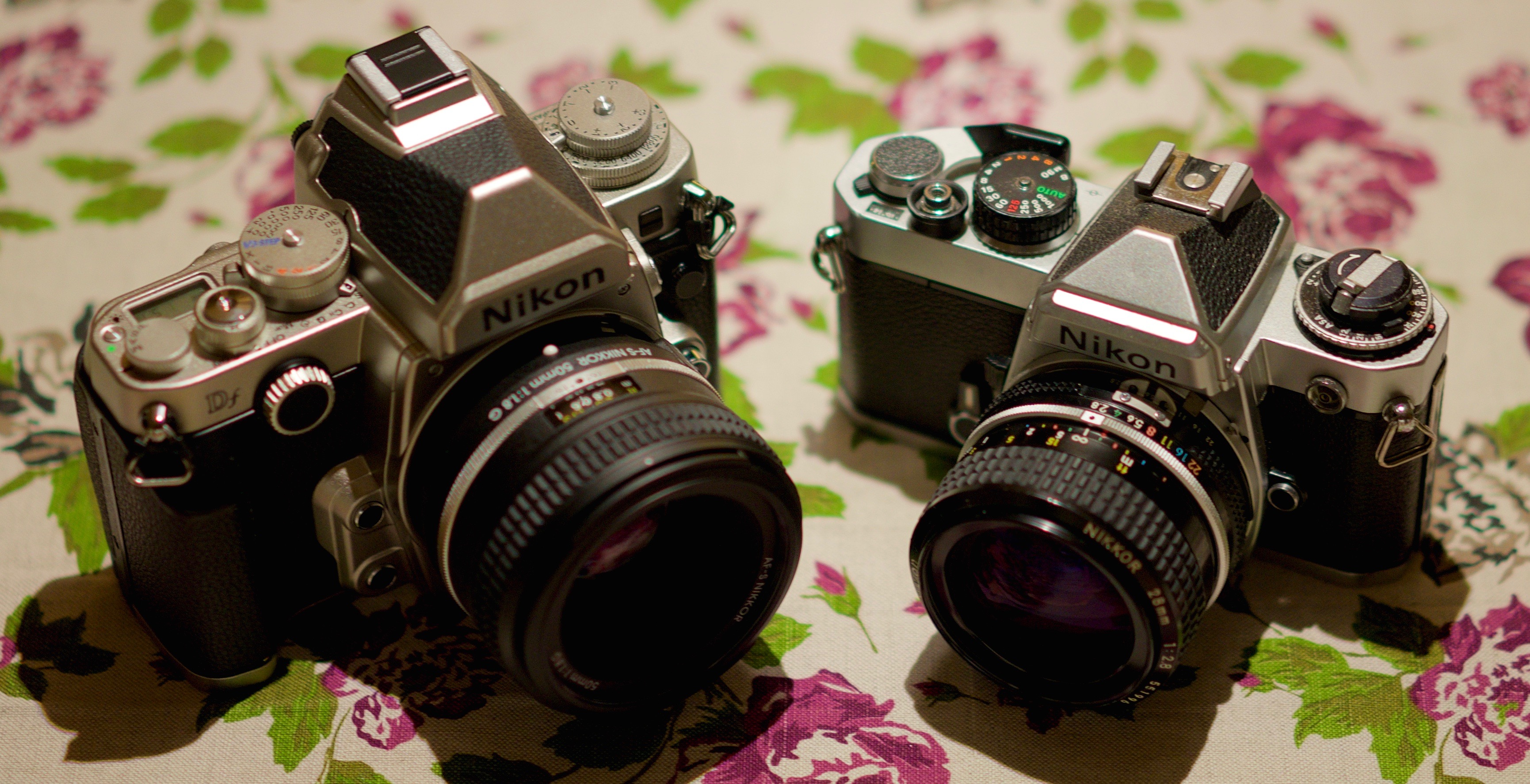Typisk retro-stil och den absolut minsta digitala fullformars-kamera som Nikon någonsin gjort, här är den jämfört med en Nikon FE, vilket givetvis är betydligt mindre.