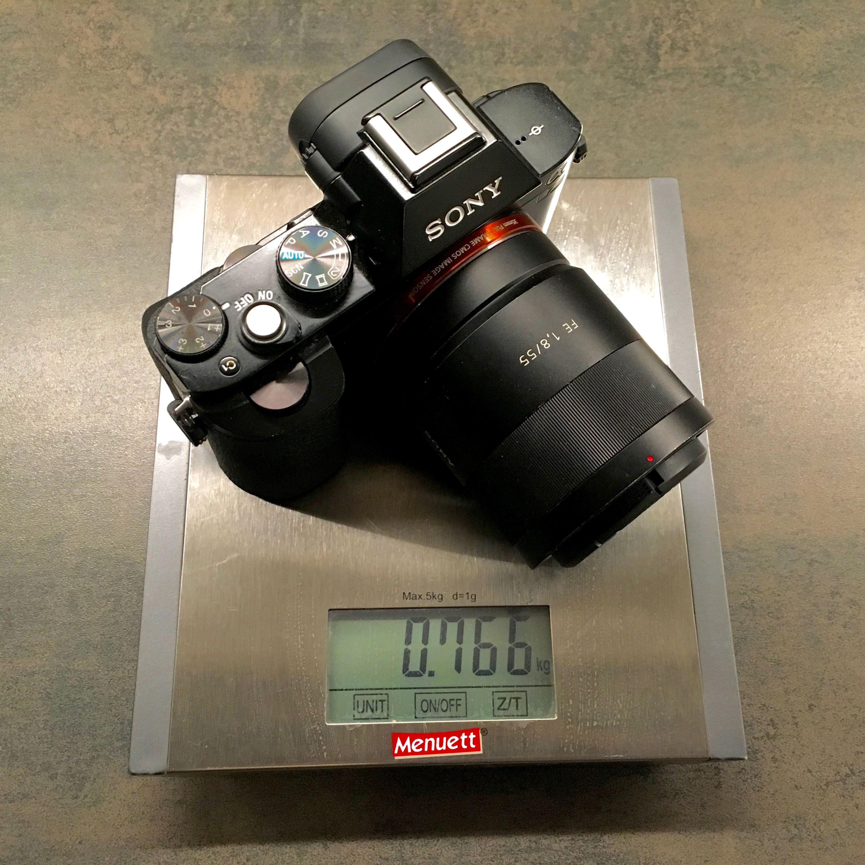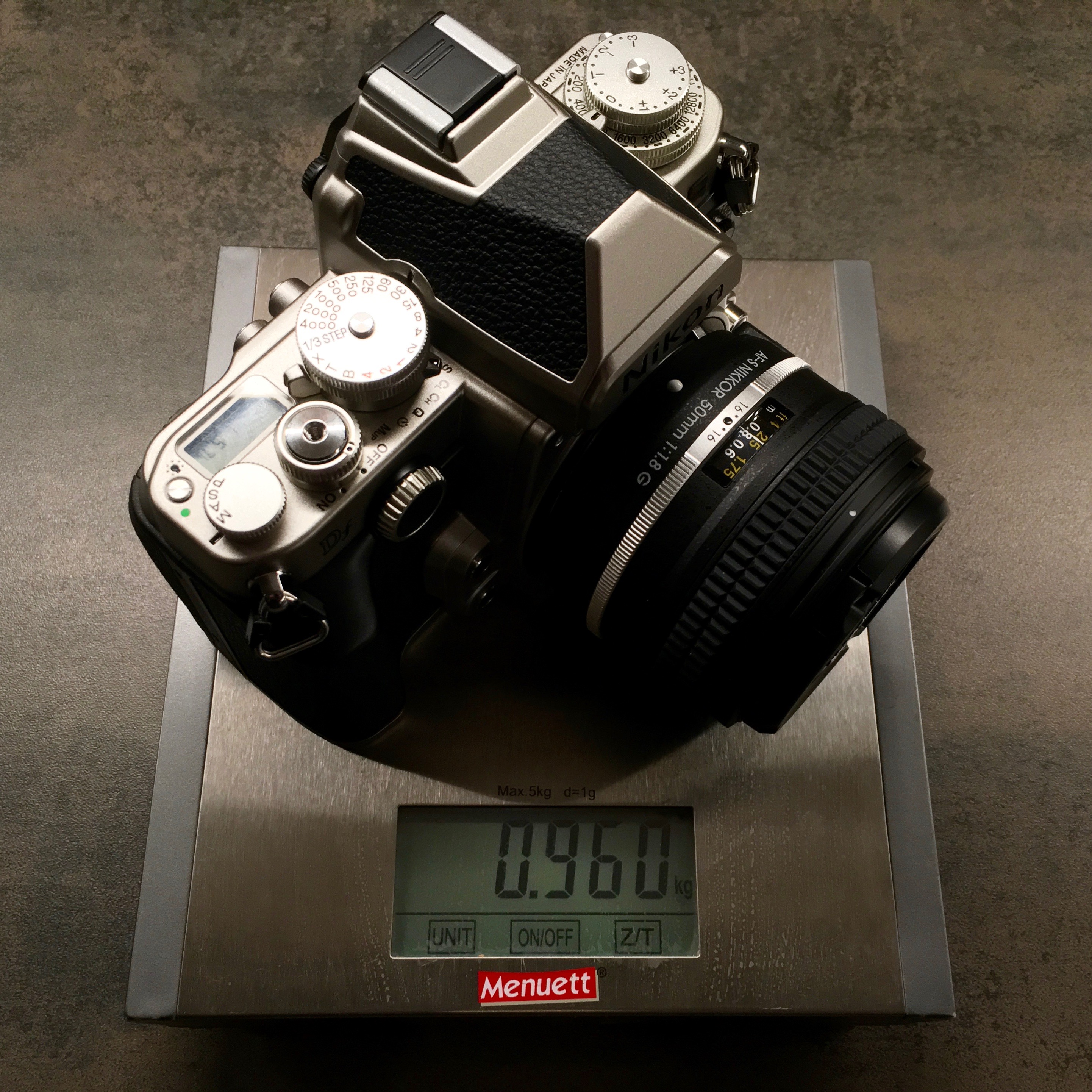 Och så här mycket väger dom. Sonyn är lättare men inte med mycket, så det är ändå rätt imponerande att Nikon lyckats få ner storleken så pass mycket med tanke på att dom ska få rum med spegel och pentaprism inuti den som Sonyn inte behöver.