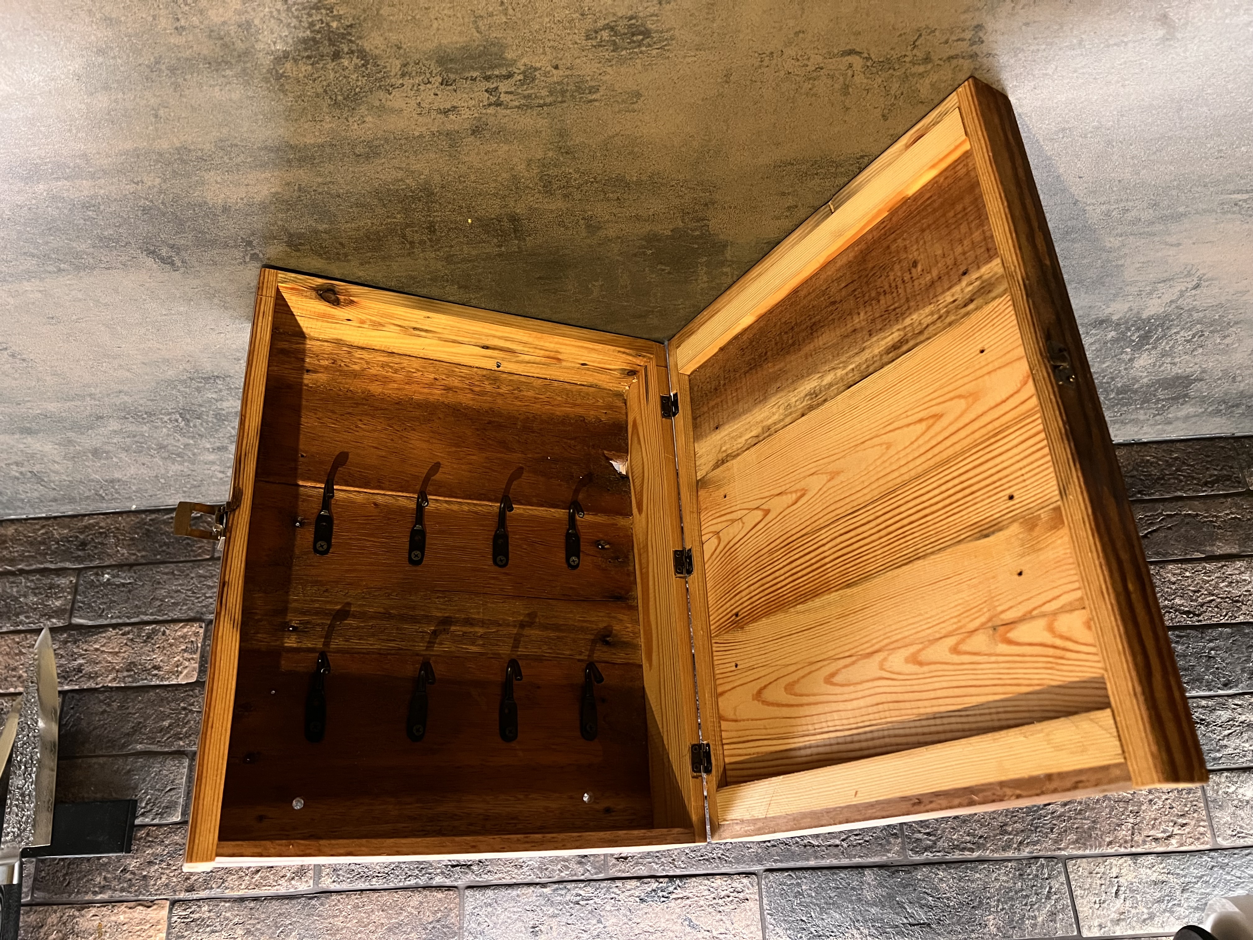 Sonen önskade sig ett nyckelskåp i julklapp, så var bara att bygga ett! Blev rätt så nöjd faktiskt, hoppas han blev det med! Det är graverat med loggan till hans företag och byggt av virket till en gammal bänk han byggde i slöjden eller något sådant av trallvirke, så det är lite skoj