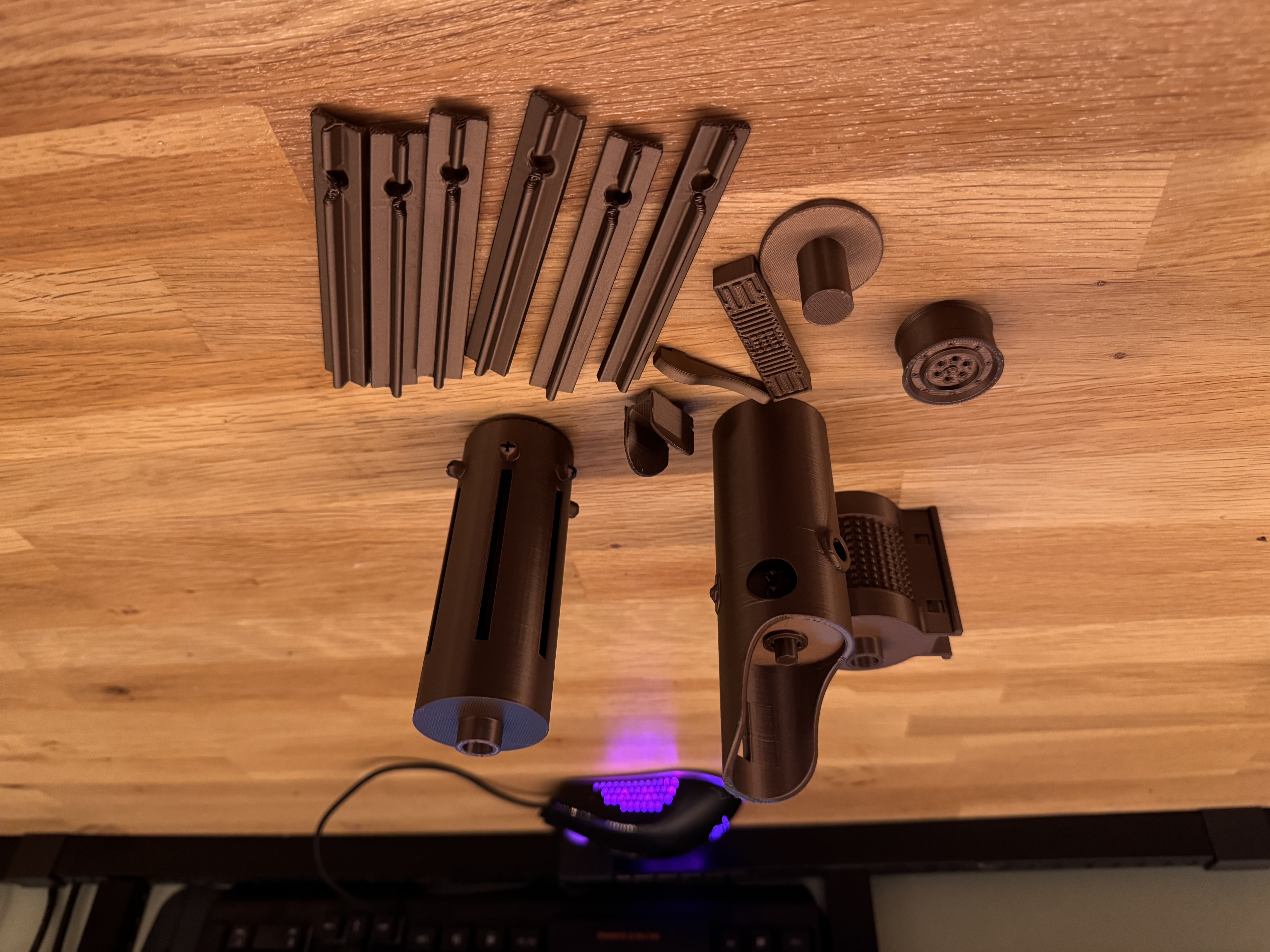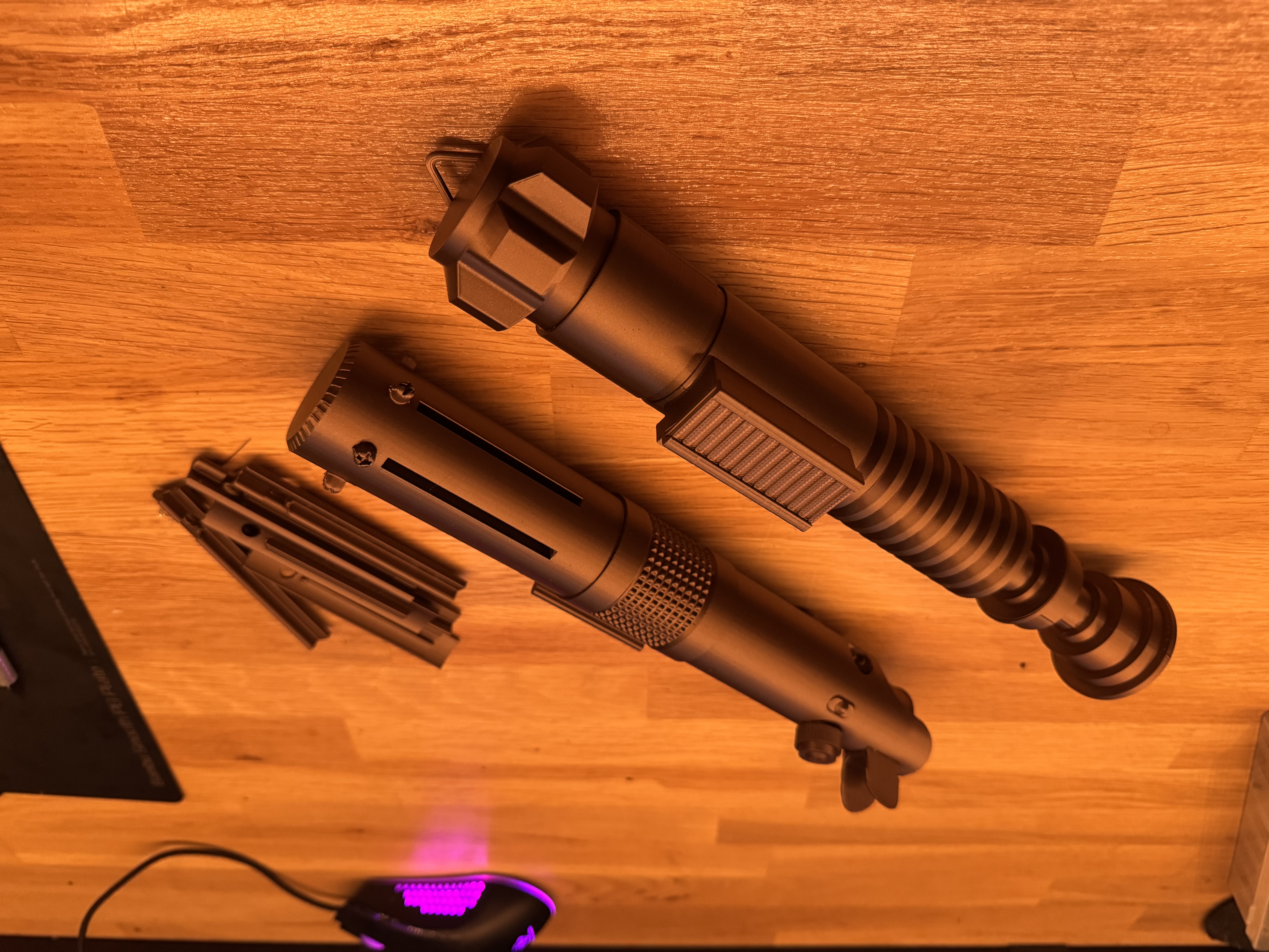Idén började som en tanke att skapa en adventsljusstake, men istället för klassiska ljus ville jag göra något mer personligt. Jag bestämde mig för att 3D-printa fyra ljussabelhandtag och kombinera dem med LED-lister som monteras i stavar för att skapa en upplyst installation som kan ändra färg och ljusstyrka. Tanken är att installationen inte bara ska fungera som dekor men även ha funktion – styras via HomeKit och visa nedräkningen till julafton! Alltså normalt sett är det en ljuskälla som vilken annan, men den 1:a december så har dom ett speciellt ljusmönster som följer färgerna från filmerna och tänds en efter en, med en sjättedel åt gången. Kan bli mycket fränt!