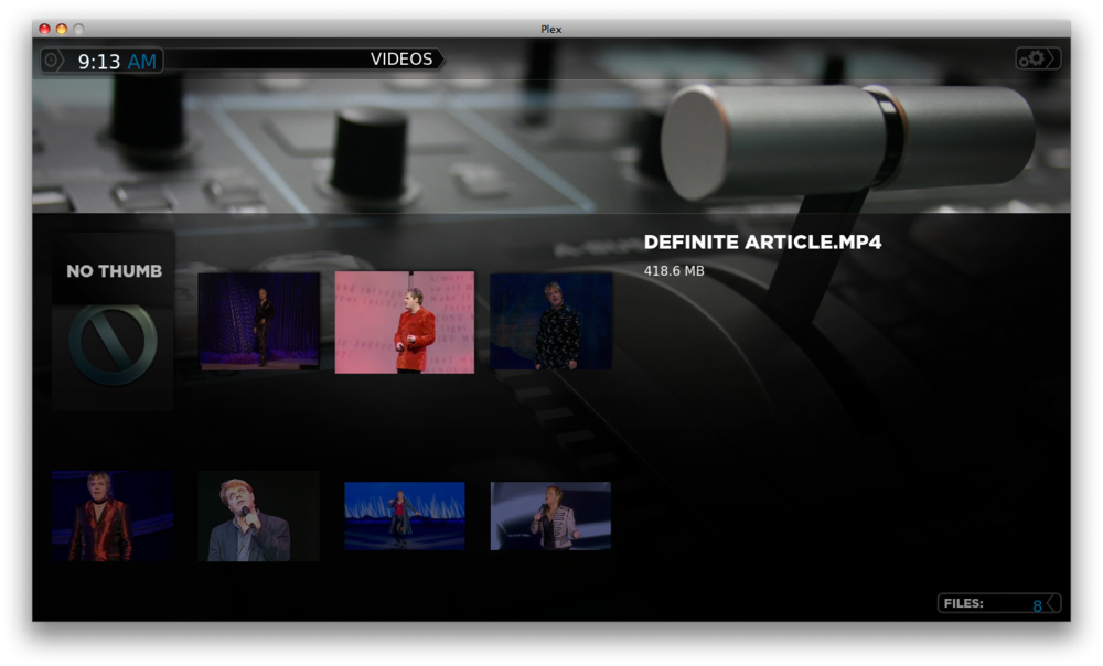 En annan nackdel är ju att fonten i Plex är så liten, på en 32" TV på andra sidan rummet är det ibland klurigt att se vad det står, den lider av samma problem som PSN på PS3, svårläst helt enkelt. Och gränssnittet är så rörigt så jag vet inte om det finns något sätt att ändra typsnittsstorleken heller. Meny-knappen på fjärrkontrollen (eller ESC på tangentbordet) går alltid tillbaka till grundmenyn, inte ett steg upp i hierarkin, vilket kan vara riktigt frustrerande. För att gå tillbaka i filsystemet så ska man markera raden med två punkter, vilket är helt logiskt - om man är unixnörd! ".." betyder "up one directory" i ett typiskt unix shell, men det är ju helt galet att lägga in det i ett sådant här gränssnitt. Likadant om du spelar upp en mediafil så måste du trycka på play-knappen och sedan gå fjorton steg till vänster för att trycka på stop-ikonen för att komma tillbaka till biblioteket. Frustrerande.