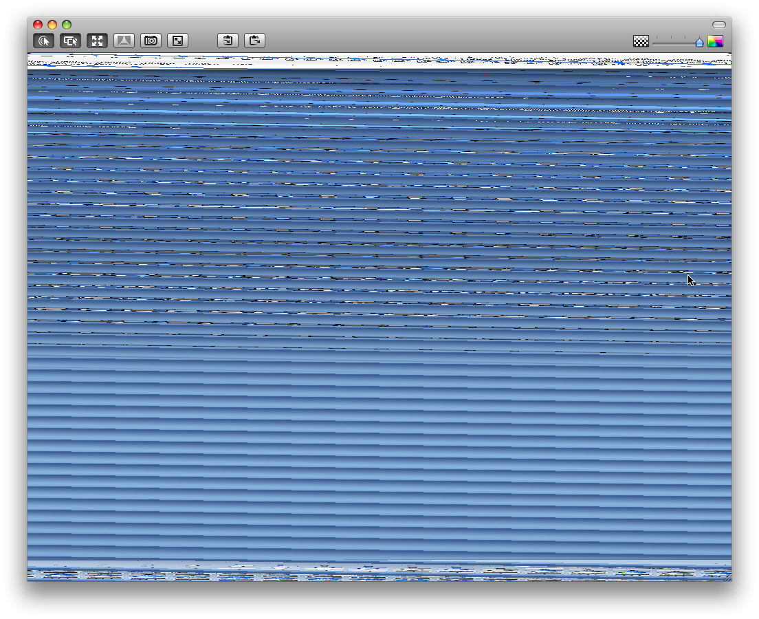 I've had some problems with a Xserve having a garbled screen (see image) when I log in to it, and since there is no monitor connected, there are no tricks for pressing "detect display" to use for resetting the display. And I'm using it blindly as well, so I needed a way to do it from the terminal. So I put together the below AppleScript that fixes the issue for me.