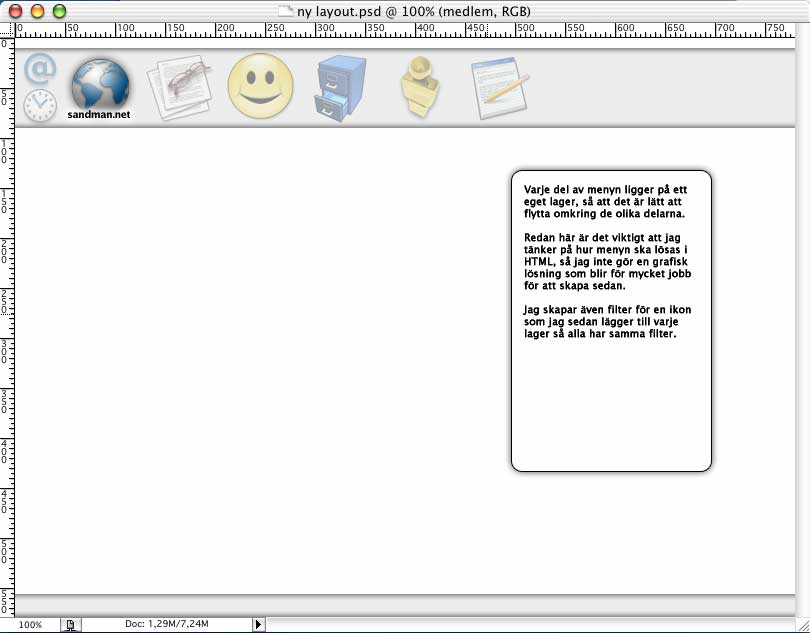 Välkommen till den första (och beroende på vad folk tycker om dem - kanske sista?) artikeln som handlar om hur layouten på sandman.net kommer till. Jag har aldrig skrivit något sådant här förut, så vi får hoppas på att det inte blir alltför tråkigt. Kommentera gärna den här texten och låt mig veta om det finns intresse för fler liknande texter. Du kan trycka på de olika bilderna för att få en mer grundlig förklaring till de olika momenten.