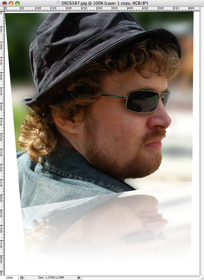 Resultatet ska se ut så hör. Lagermasken har då skapat en övergång från 0% till 100% opacitet i nederkant och vi har en reflektion!