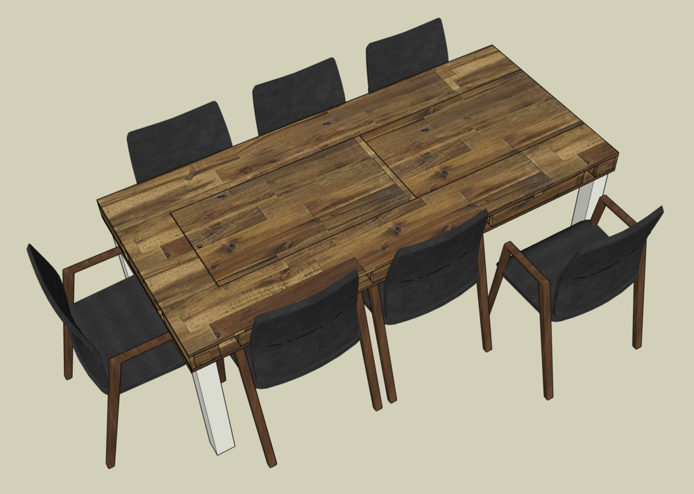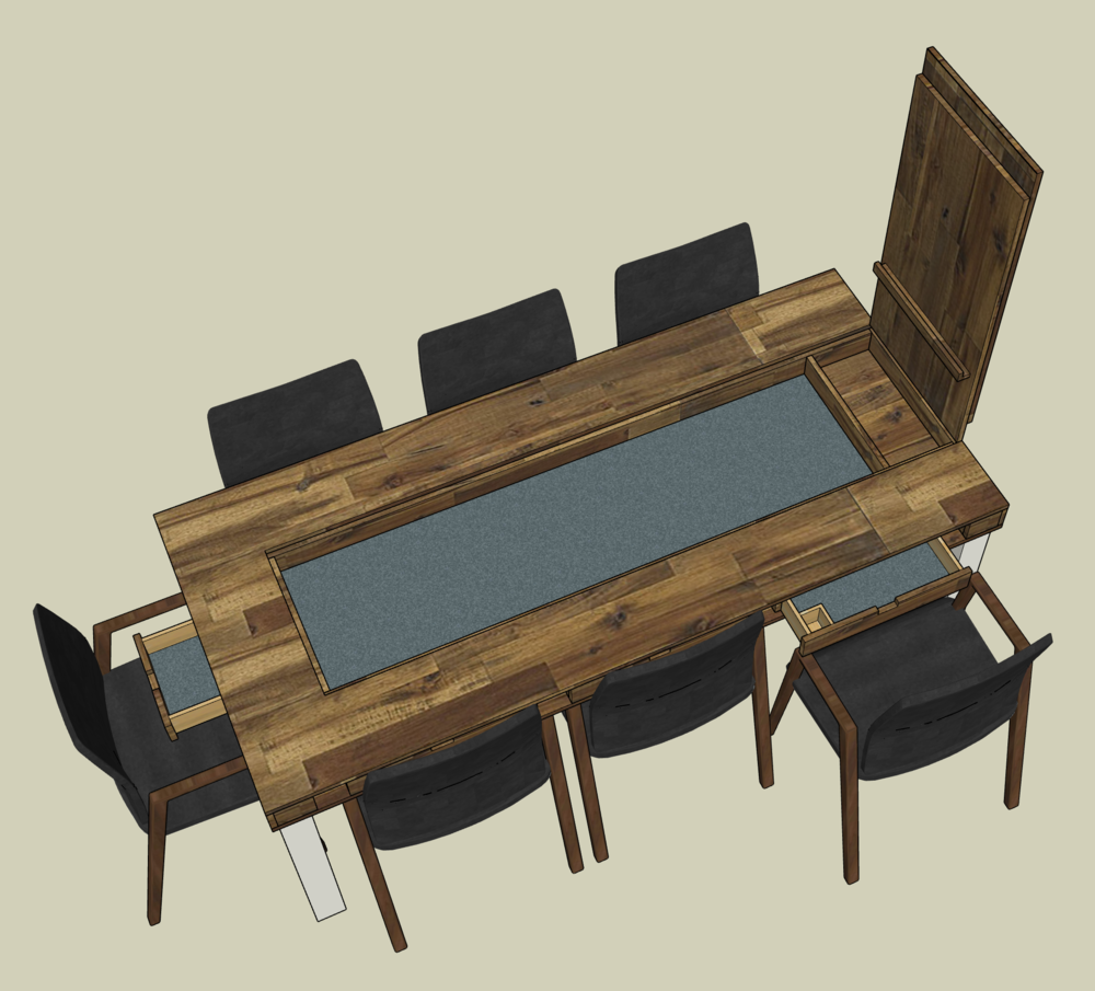 Gjorde en skiss på ett spelbord förut men har inte börjat bygga det än. Då jag flyttade hem kontoret för en stund sedan så fick jag med mig en massa konferensstolar som är väldigt bekväma. Dock är dom rätt så breda så fick lov att tänka om hur spelbordet ska se ut och fungera.