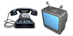 Problemet med detta är att symbolerna för TV och Telefoni är som till höger. En telefon och en TV... från tjugo år tillbaka i tiden. Detta beror på att symbolspråk är väldigt starkt, och en tjock-tv med antenner säger TV mer än en platt-TV, samtidigt som en gammal bakelit-lur ser mer ut som en telefon - symbolmässigt - än en modern liten mobiltelefon-liknande lur som vi ju faktiskt använder i hemmen.