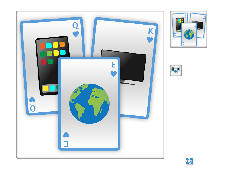 Så när jag satte mig ned och skulle skapa ikonen så insåg jag rätt snabbt att det inte bara går att ta dessa tre symboler och slänga ihop dem godtyckligt i en fyrkantig ruta och hoppas att folk förstår poängen. Nej, jag tänkte att jag måste spela på ordet "play" och att ha alla dessa tre tjänster är som att ha en bra hand i till exempel ett kortspel, så därifrån till tre spelkort med varsin symbol var inte en så lång process.