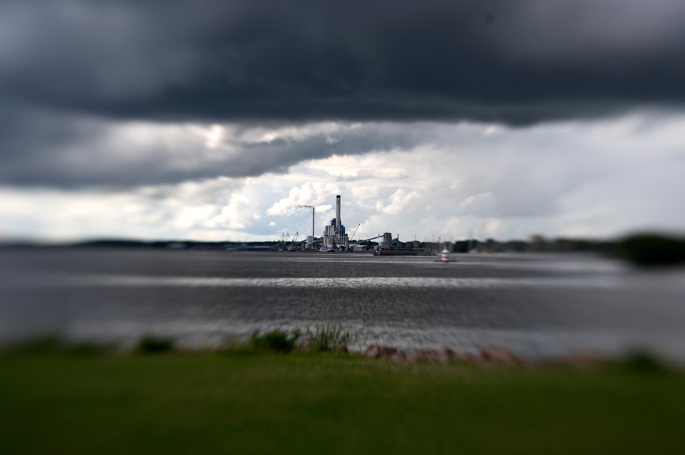 Mysigt stormiga moln som kommer in över kraftvärmeverket här i Västerås. Taget med en Lens Baby-lins för lite mysigt tilt shift-focus.