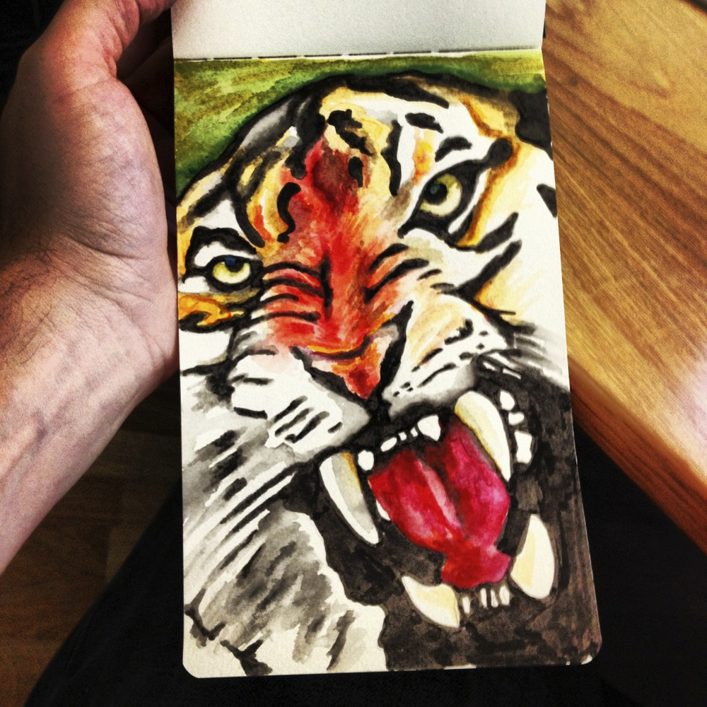 Nyckelord: dagens teckning, teckning, sketchbook, tiger, djur eller moleskine