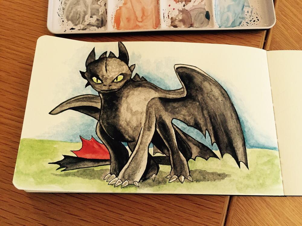 Nyckelord: Pixar, Disney, how to train your dragon, vattenfärger, daily drawing, moleskin ® eller aquarelle