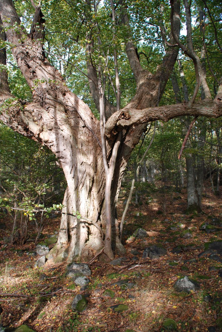Fantastisk bild på ett ungt träd som vuxit upp bredvid det äldre och likt en krycka stöder en av dess grenar. Om du tittar noga så kan du se att det hänger en liten käpp runt den grenen. Den hängde där när jag tog kortet.